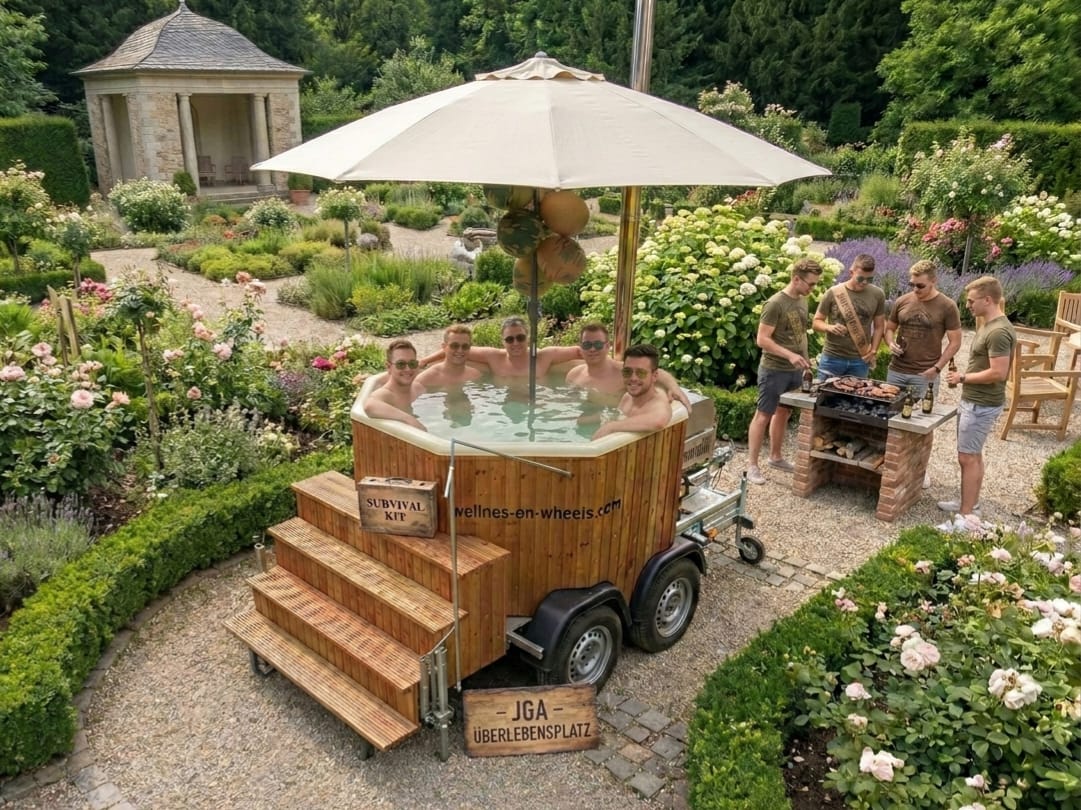 Erst Cocktails mixen, dann im Hot Tub entspannen Nach dem Premium Cocktailkurs geht euer Junggesellenabschied direkt entspannt weiter. Im Hot Tub könnt ihr gemeinsam anstoßen, die besondere Atmosphäre genießen und den Abend in gemütlicher Runde ausklingen lassen. Genau diese Kombination aus Erlebnis, Geselligkeit und Wellness macht das Special so besonders. Erst gemeinsam mixen und feiern, danach im warmen Wasser abschalten und einfach den Moment genießen. Das warme Wasser, die lockere Stimmung und das gemeinsame Beisammensein schaffen eine Atmosphäre, die perfekt zu einem besonderen Anlass passt. So wird aus eurem JGA nicht nur eine Feier, sondern ein echtes Erlebnis mit Wohlfühlfaktor.
